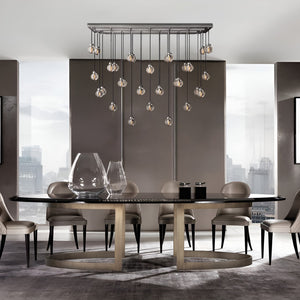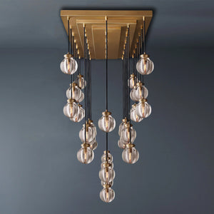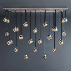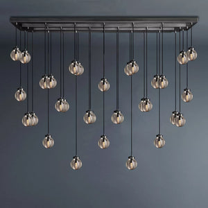 The collection captures the mesmerizing beauty of the ocean's luster by carving intricate grooves into the glass pearls. Inspired by the Venetian inciso technique, these grooves diffuse light through layers of glass, creating shimmering shadows and a contemplative, ethereal glow. Each pearl is a weighty K9 crystal glass sphere, hand-carved by skilled artisans, while solid brass fittings enhance both durability and timeless elegance.